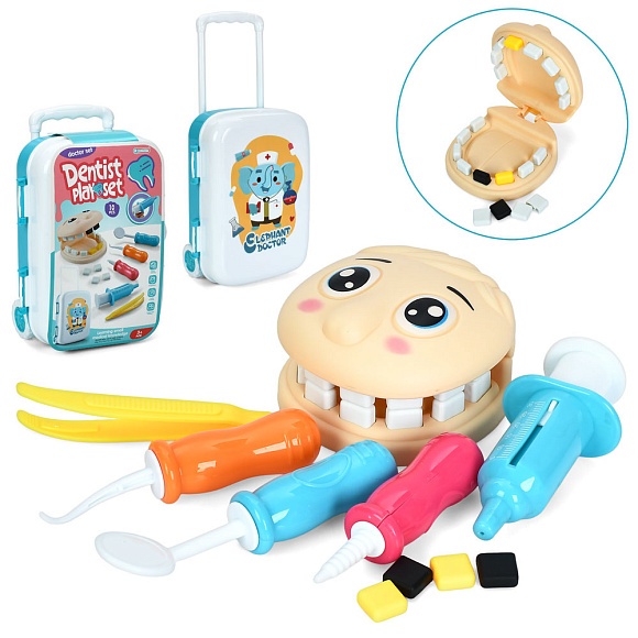 Опис Набір лікаря qy851 стоматолог, щелепи, мед.інстр.,чемодан(2колеса,ручка),10пр,в карт.обг.,21-31-11см