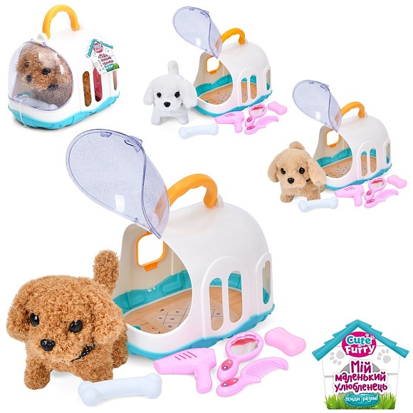 Тварина в переносці 051-1B собака, ходить, набір грумера, 3 види, муз., бат., кул., 22-16-16 см.
