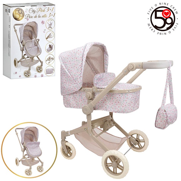 Коляска T742056 для ляльки,трансфор.,3в1,люлька,рег.руч.,корз.,сумка,мет.+плас.,в кор.,39,5-58-14,5