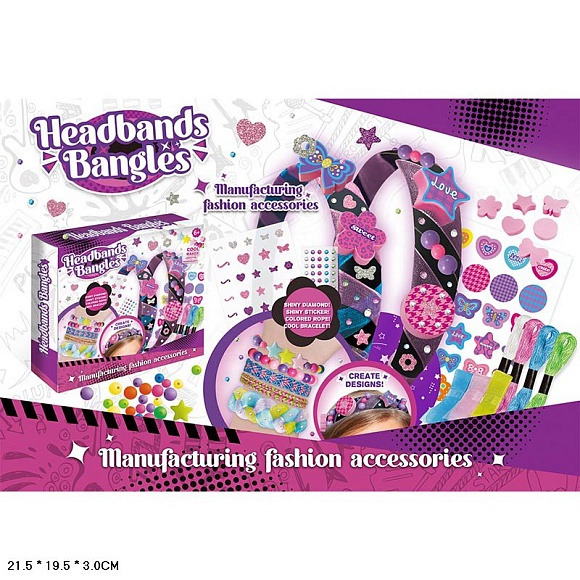 Набір для творчості 16006 обруч для волосся 2шт.,нитки-4 кольори,намистини,наліпки,кор.,22-19,5-3см.