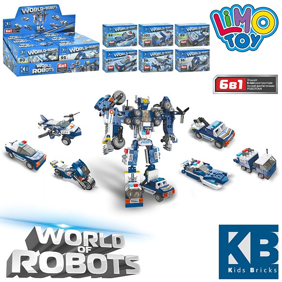 Конструктор KB 5000 поліція, транспорт, 6 видів (від 79 дет.), кор., 6в1, 6шт. в диспл.,29-10-13,5см