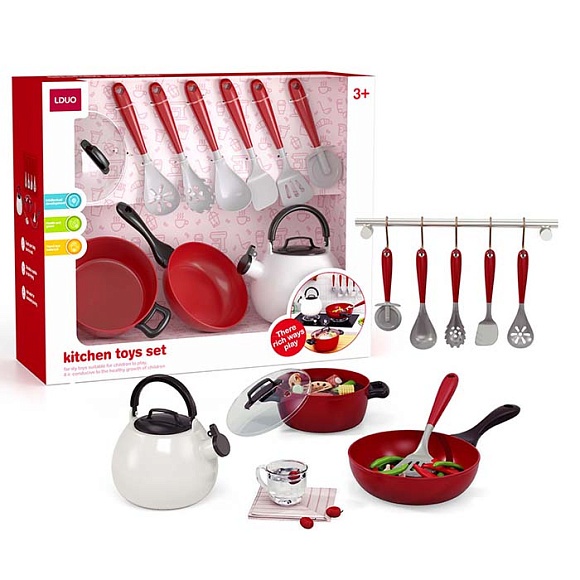 Опис Набір посуду 86035 кастрюля, сковорідка, чайник, кухонний набір, 9 предм., кор., 40,5-33-13,5 см.