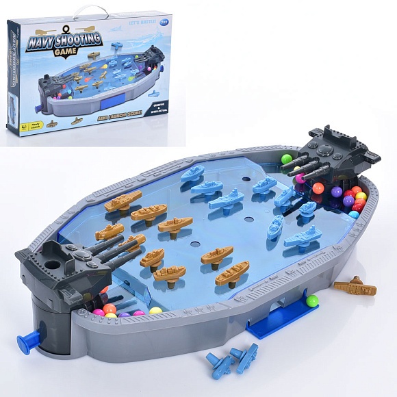 Опис Настiльна гра 707-126 Морський бій, ігрове поле, фішки-кораблі, кульки, кор., 42-25,5-6,5 см.