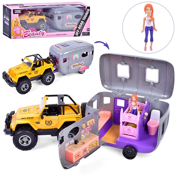 Лялька 89866 джип(гум.колеса,відчин.дв.),причеп/дом на колесах,меблі,муз.,світло,бат.,кор.,49-17-14с