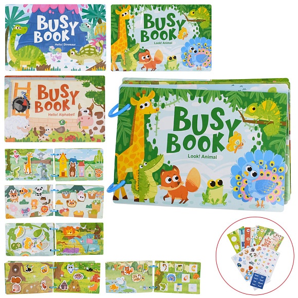 Гра 557-581-583 бізікнига, развиваюча книга, картки з фігурками, липучки, 3 види, кул., 21-14-1 см.