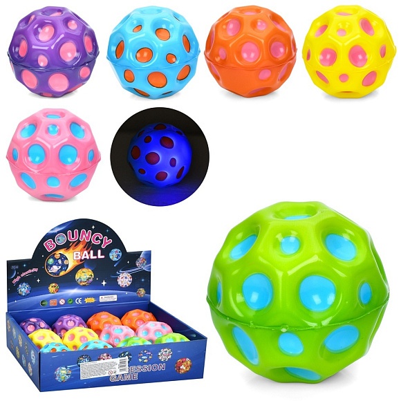 Опис М'яч дитячий фомовий ms 4543 антигравітаційний,6 кольорів,світло,бат.(таб.),12шт. в диспл.,28-20,5-7