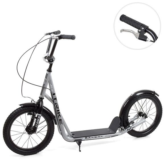 Самокат SR 2-045-2-G дорослий, сталь, 2 кол.-гума 16д, ручне гальмо, підніжка 28-11 см., сірий.