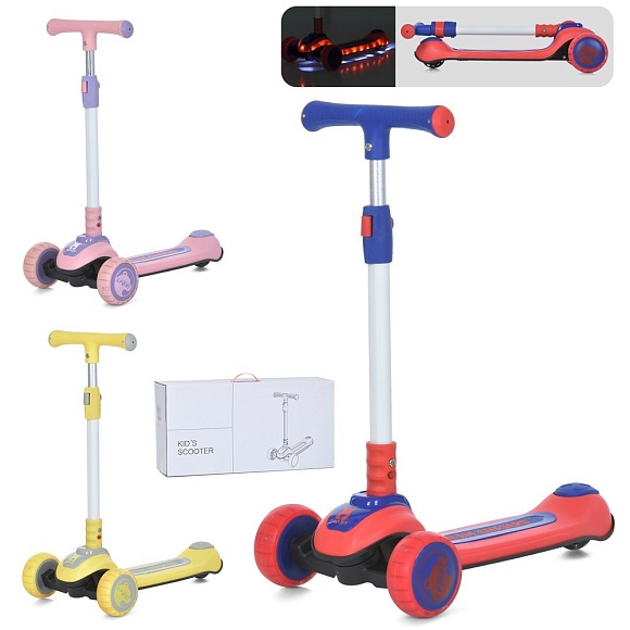 Опис Самокат jr 3-094 maxi-big, метал+пл,3 колПУ,2 пер.120мм-світло,антиковзна поверхня,3кольори,бат.,кор