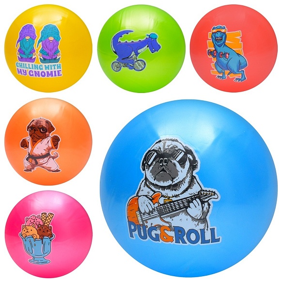 М'яч дитячий MS 3773 9 дюймів, 60г, принт (собаки, динозаври, монстри, кошенята), 6 видів/6 кольорів