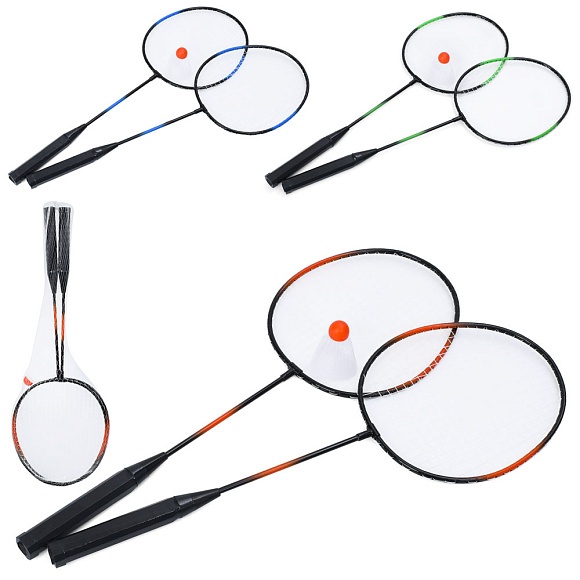 Бадмінтон MS 4934 ракетки 2шт (60см, метал), дерев'яна ручка,1волан7см,3 кольори, сітка