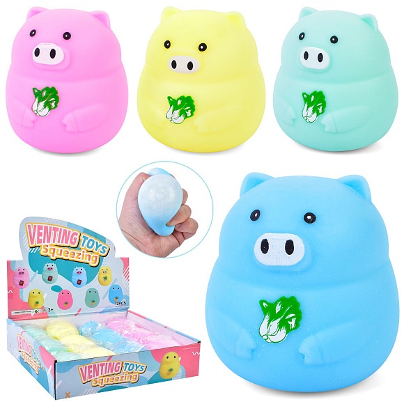 Опис Іграшка MS 3950 свинка, антистрес, борошно, 4 кольори, 12 шт. в диспл., кул., 26-6,5-23,5 см.
