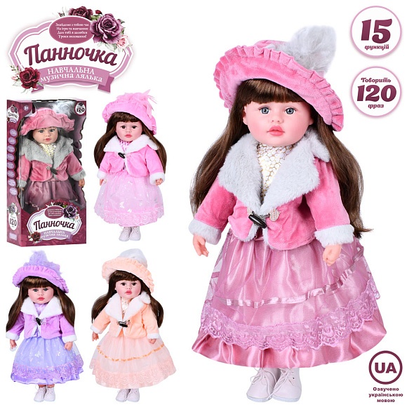 Опис Лялька M 5913 I UA Панночка,м'яконабивна,навч.,муз.(укр),загадки,пісня,анг.,скоромовка,120фраз,4види