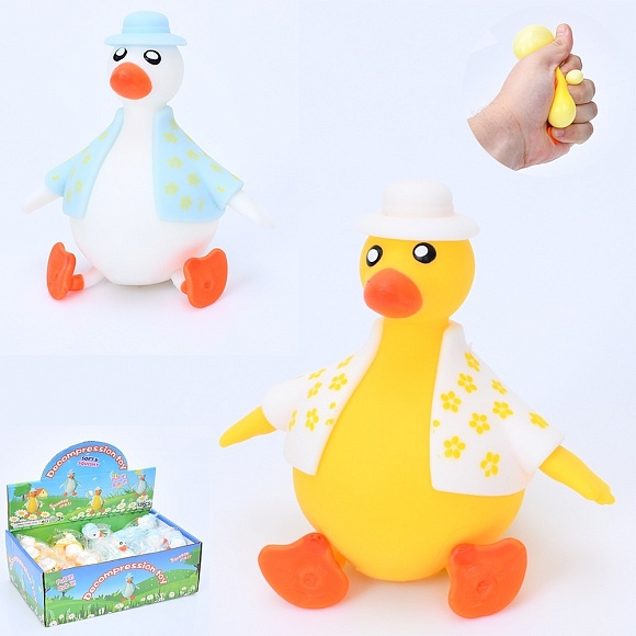 Опис Іграшка MS 4030 антистрес, каченя, борошно, 2 кольори, кул., 12шт. в диспл., 25-15,5-8,5 см.