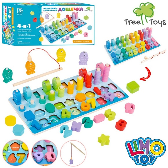 Опис Дерев'яна іграшка Багатофункціональна дощечка MD 1891 цифри, риболовля магнітна, вудка, кор.