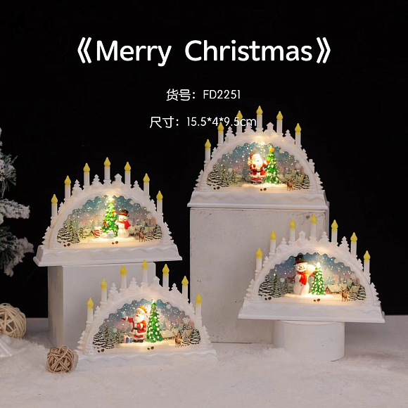 Різдвяний ліхтарик FD2251 сніжний, 4 види, муз., світло, бат., кор., 8 шт. в диспл.,32,5-12-18 см.