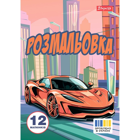 Опис Розмальовка А4 1Вересня "Супер автомобілі", 12 стор.