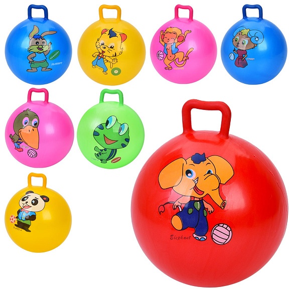 Опис М'яч дитячий ms 4878.9 дюймів, 65-70г, ручка, 5 кольорів/мікс видів (тварини)