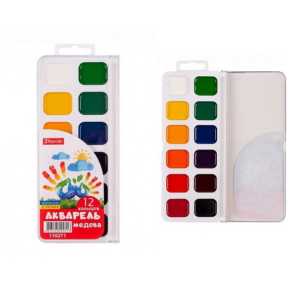 Опис Фарби акварельні 1Вересня 12 цв. медові б/п