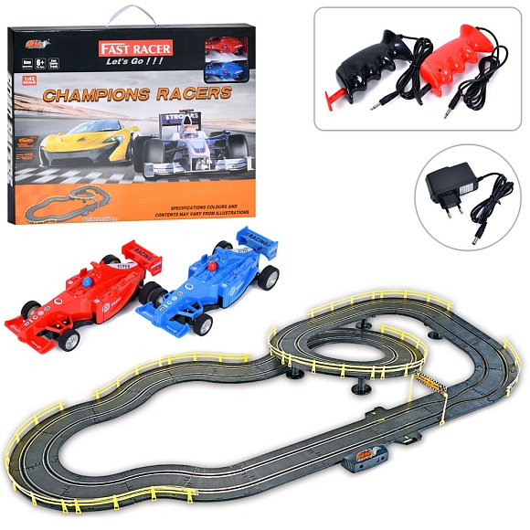 Опис Трек 6606-B дист.кер.(на шнурі), 1:43, машинка 2шт., від мережі 220V, кор., 56-43,5-5,5 см.