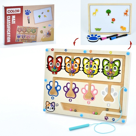 Дерев'яна іграшка Лабіринт MD 1517 магніт.,2в1(магніт.дошка),фігурки-магн.,маркер,губка,кор.,30-23-3