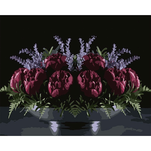 Опис Картина за номерами Strateg Червоні піони на чорному фоні 40Х50 (AH1280)