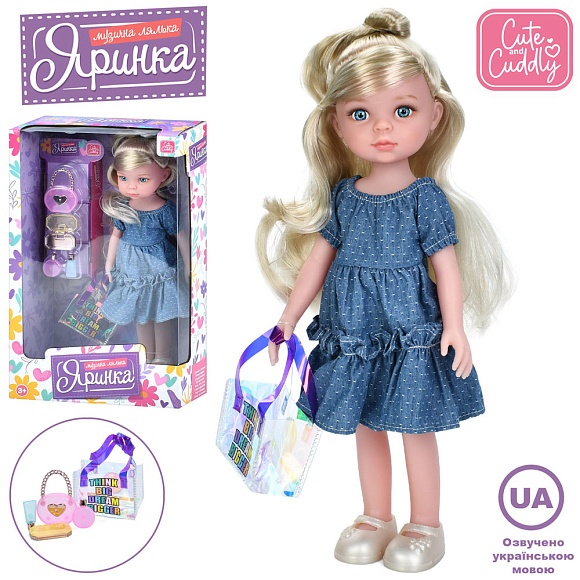 Опис Лялька M 6076 I UA Яринка, 5 пісень, сумка, аксесуари, муз. (укр.), бат. (табл.), кор., 22-35-10,5см