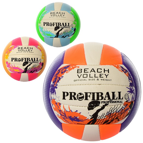 М'яч волейбольний 1107ABCDE офіц. розмір, ПУ, 2 шари, ручна робота,18 панелей, 260-280 г.,5 кольорів