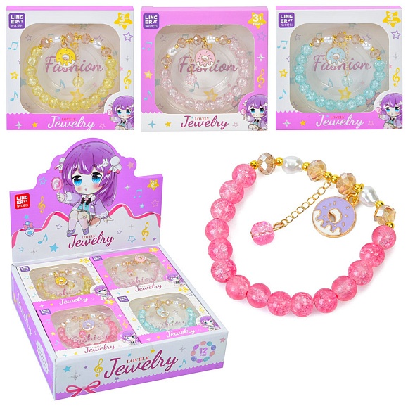 Браслет UT7007A7 намистини, 4 види, кор., 12шт. в диспл., 19,5-19,5-5 см.