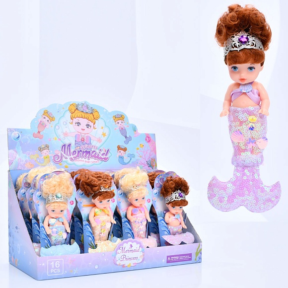 Лялька A769B русалка, лист, 16 шт. (4 види) в диспл., 33,5-19-17 см.