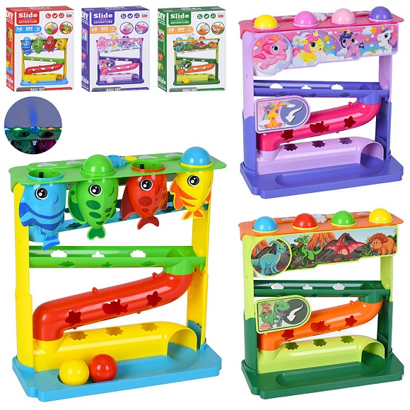 Гра LM9001-2-3 трек, музика,звук(англ),світло,пара/дим,кульки 4шт,3 види (рибки, конячки, динозаври)