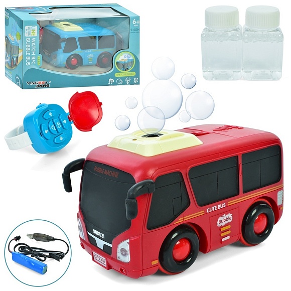 Автобус YJ-065 радіокер.2,4G(пульт-браслет),акум.,мильні бульбашки-2запаски,USB,2кольори,світло,кор.