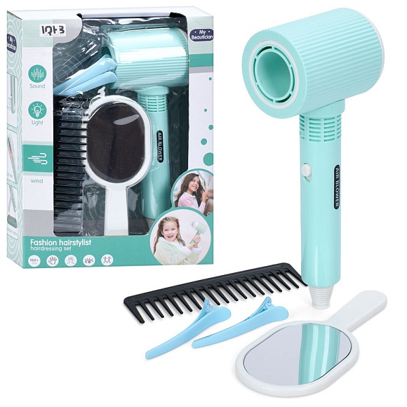 Опис Набір аксесуарів a2008-3 набір перукаря, фен-повітря, дзеркало, гребінець,заколки, кор,19,5-25,5-7см