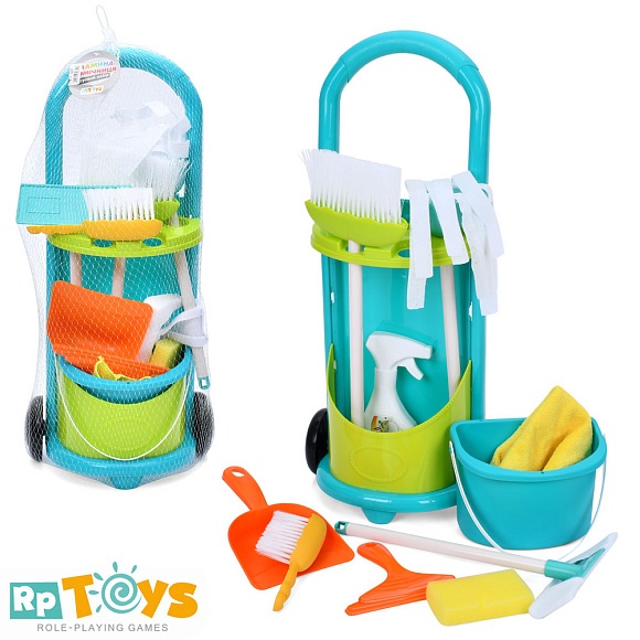 Опис Набір для прибирання a55-22 візок, відро, щітки, совок, ганчірки, швабра, сітка, 62-25-17 см.