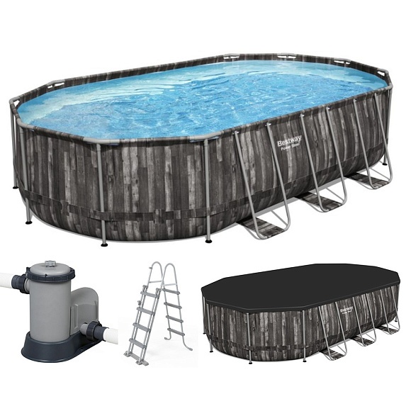 Басейн BW 5611R овальний, фільтр-насос, сходи, чохол, 610-366-122 см.