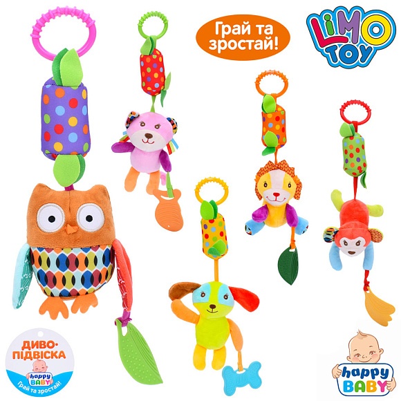Опис Підвіска на візок skk-016 тварини, прорізувач, плюш, 5 видів, кул., 10-17-6 см.