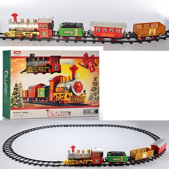 Залізниця 1369 75см./105-75см., локомотив, 3 вагони, 12 дет., муз., світло, бат, кор., 42-28,5-6см.