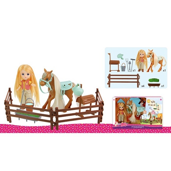 Опис Лялька 92013-a шарнірна, конячка, садові інструменти, кор., 29-18-6 см.