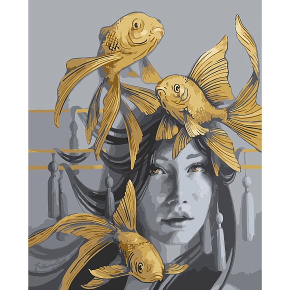 Опис Картина за номерами Strateg ПРЕМІУМ Золоті рибки з лаком розміром 40х50 см SY6027