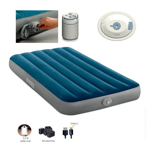 Опис Велюр матрац 64187 надувний,,одномісний, вбудований насос 99х191х25см.,usb