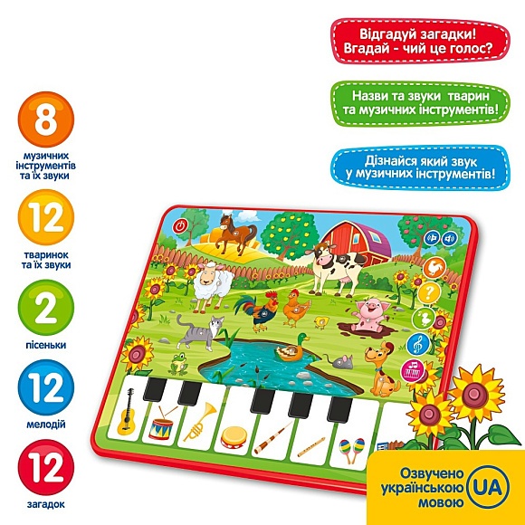 Планшет M 3811 ферма, навч., загадки, цифри, муз. (укр., анг.), світло, бат., кор., 19-25-2,5 см.