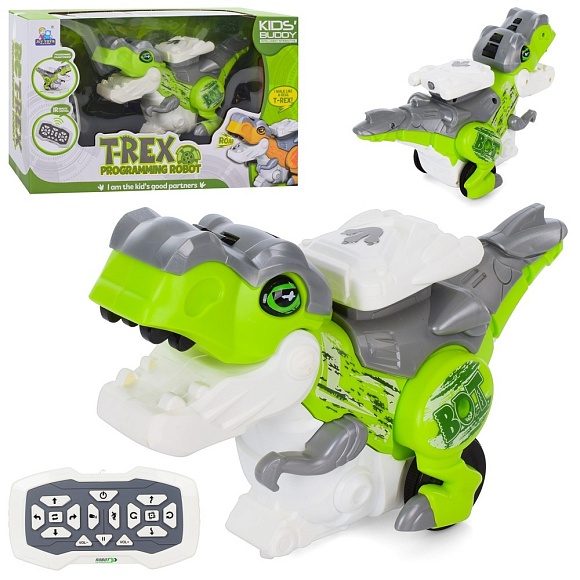 Динозавр 8002 дист. кер.(ІЧ), ходить, програм., 2 кольори, муз., світло, бат., кор., 26-18,5-11 см.