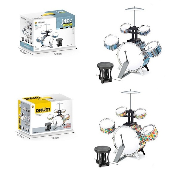 Опис Барабан 1675T-2033T барабанна установка, 59-34-в67см, барабан 5шт, тарілка, стільчик, 2 види, кор.
