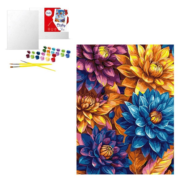 Опис Набір для розпису по номерах "Яскраві жоржини з фарбами металік extra" 30х40см