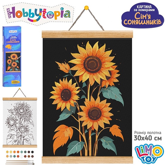 Опис Набір для творчості M 6085 UA картина за номерами,Сім'я соняшників,30х40см,полотно на підрамнику,пен