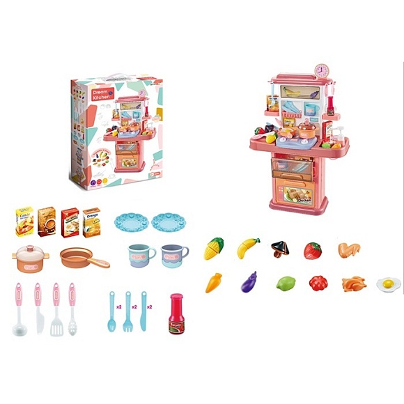 Опис Кухня 777-8 плита, мийка-ллється вода (механіч.), посуд, продукти,муз.,світло,бат.,кор.,41-54-13,5см