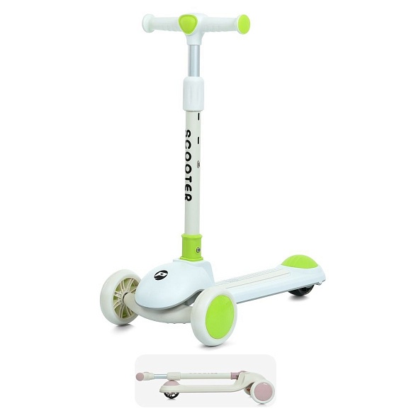 Опис Самокат jr3-126-gr mini, метал+пластик, 3 колеса pu, 2пер120мм,задн 90мм,кермо рег.,муз.,світло,бат