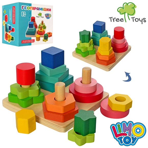 Дерев'яна іграшка Пірамідка MD 1584 Склади фігури за схемою, навч(форми, кол,лічба)в кор-ці21-18,5см