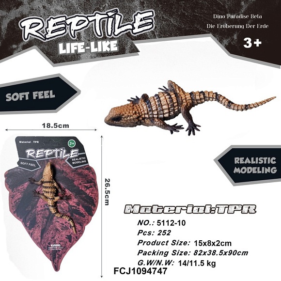 Тварина 5112-10 ящірка, матеріал TPR, лист, 18-26,5-3 см.