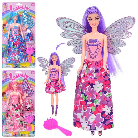 Лялька LY-2827 (48шт) 31см, фея, з крилами, спідниця, гребінець, 3 види, у слюді, 19-38-4см