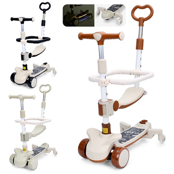 Самокат JR 3-118 5в1(біговел),мет.+пласт.,3кол.ПУ,2пер.115мм,задн.85мм,3кольори,муз.,світло,бат.,кор